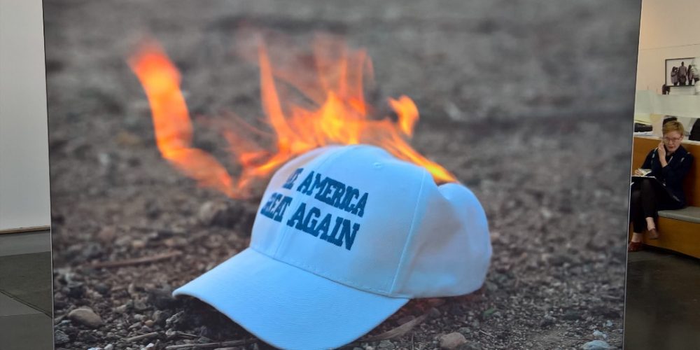 mehr lesenThe Donald Trump campaign slogan burns … Foto: André Remark in der Akademie der Künste Berlin anlässlich der Berlin Biennale 2016.