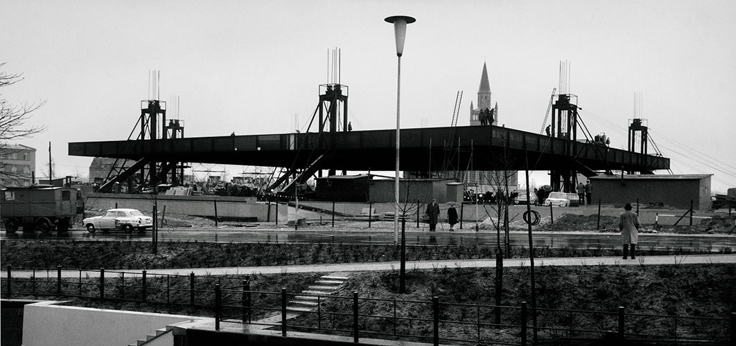 Neue Nationalgalerie, Anhebung des Daches, 5. April 1967