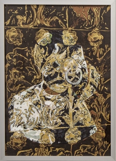 Bildunterschrift: Susanne Roewer, The Cage, 2013, Ätzung und Lack auf Kupfer und Papier, 34 x 25 cm