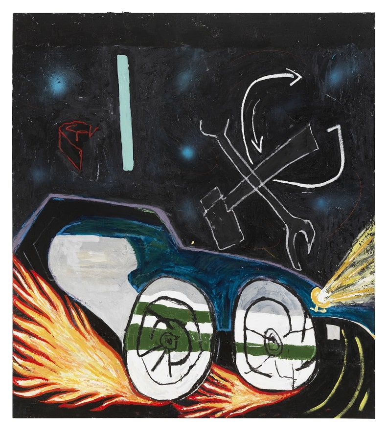 Ál Varo Tavares D’Guilherme – Night Rider Early Workout, 2023, Acrylic and mixed media on canvas, 160 x 160 cm, Photo Jens Ziehe.