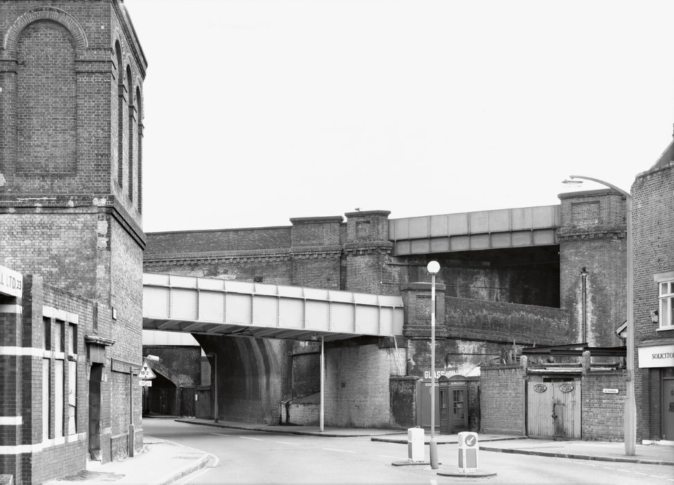 Bei Great Suffolk Road ist vor lauter Straßen und Einfahrten, Unterführungen, Eisenbahnbrücken und Gebäudeteilen die räumliche Orientierung verunmöglicht und in ihrer Gesamtheit führen die Bildkonstruktionen der frühen Architekturaufnahmen den Blick des Betrachters immer wieder im Kreis herum, bieten keinen Halt und lassen die Wahrnehmung taumeln.