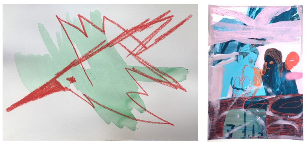 Öl, Ölkreide und Acyl auf Papier, 32 x 23 cm