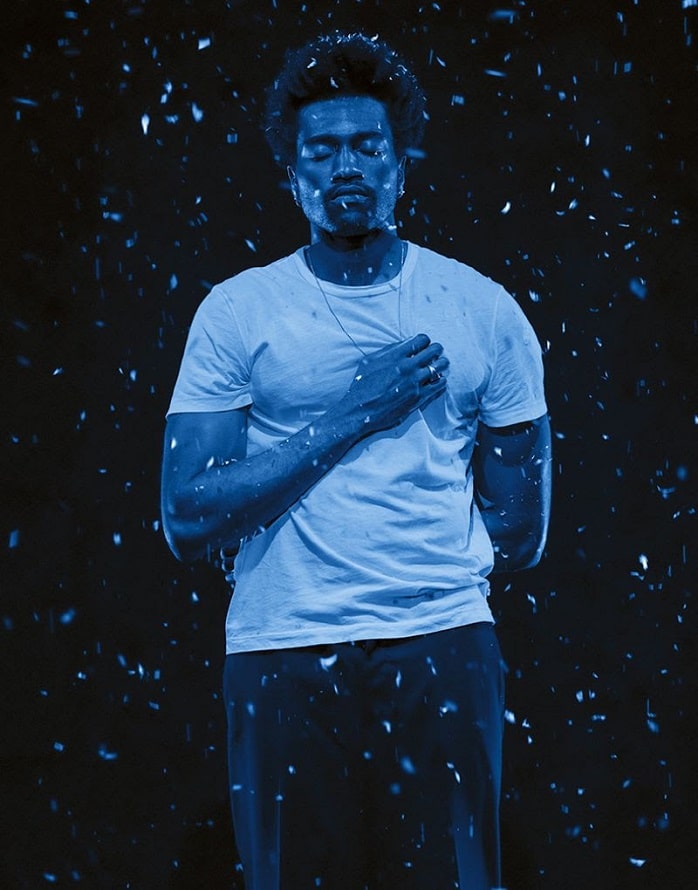 Das Herzstück der Ausstellung und Namensgeberin dieser ist Weems neueste Arbeit „People in Conditions“, die in der Galerie Barbara Thumm erstmalig der Öffentlichkeit präsentiert wird. Sie ist eine Weiterentwicklung von Weems‘ Videoarbeit „Cyclorama – Conditions, A Video in 7 Parts“, welche Weems 2021 für die Ausstellung „The Shape of Things“ in der Park Avenue Armory, New York City, produziert hat. Die bläulich eingefärbten Fotografien zeigen im Regen und Schnee stehende Choreograph*innen und Performance-Künstler*innen wie Gabri Christa, Okwui Okpokwasili und Vinson Fraley. Die Modelle den Betrachter*innen frontal zuwendend, eröffnet Weems den Blick auf Kunst- und Kulturschaffende in ihrer puren Daseinsform und Schönheit, konfrontiert mit den simultan bestehenden gewaltvollen und hoffnungsbringenden Realitäten unserer Zeit. Im Zentrum der Arbeit steht die Frage, wonach sich der Wert eines Lebens bemisst. So beschreibt Weems: „Wenn man an die Weite des Universums denkt, in dem wir leben, sind wir Staub im Wind – und doch sind wir hier.“
