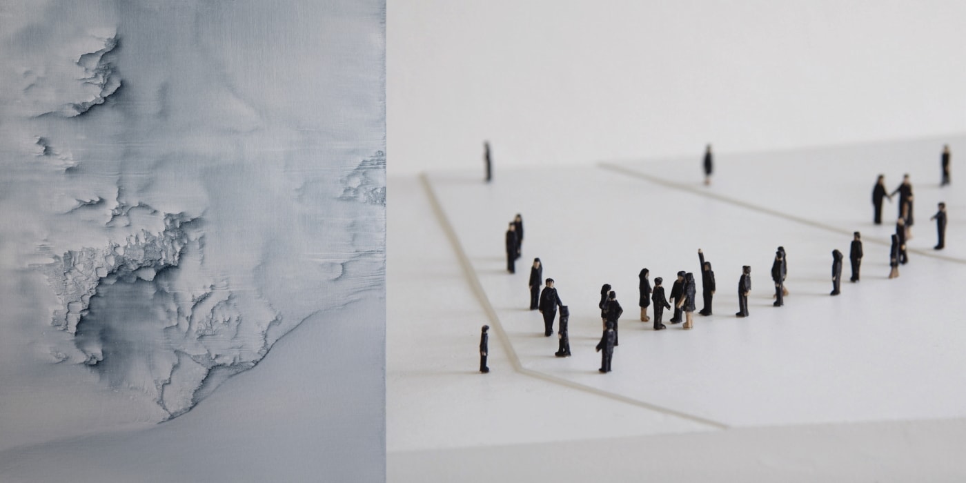 Bildunterschrift Titel: Christo Daskaltsis, 0420-01, 2020 (links), Lorenz Friedrich, Kleine BetrachterInnen, 2014 (rechts)