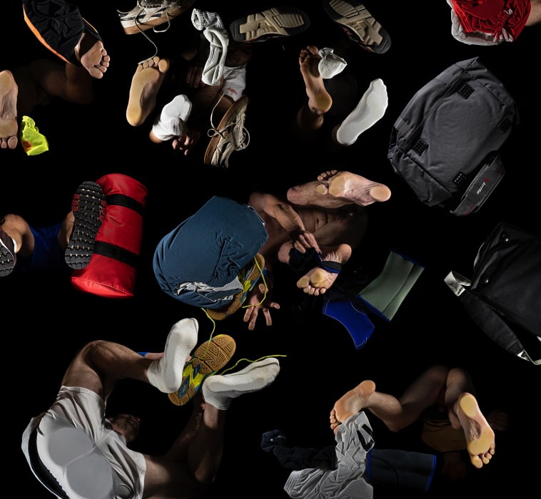 In Horvatićs lebensgroßen Fotografien mit Szenen aus dem Alltag hebt der Künstler die Distanz zwischen Umwelt und Porträtierten auf, in dem er einen besonderen Blickwinkel wählt: Von unten aufgenommen, verstecken die Bilder ebenso viel, wie sie aufzeigen, denn sie verweigern dem Betrachter den Einblick in den Teil des Körpers, den wir am unmittelbarsten mit Identität assoziieren – dem Gesicht.