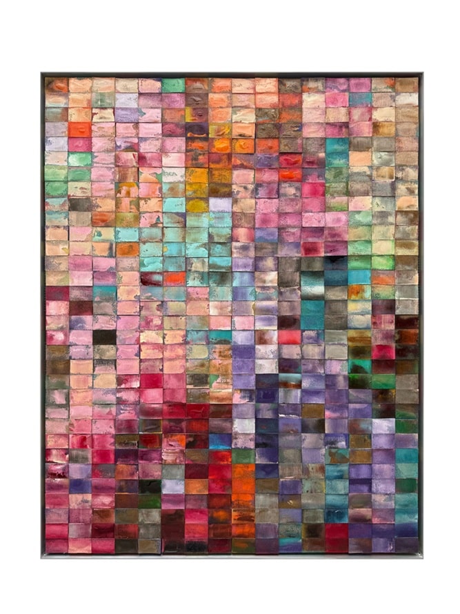 Bildunterschrift Titelbild: Fahar Al-Salih, „To look Through a Rainbow“, 2025, Acyrl, Harz auf Topfreiniger, 175 x 136 cm