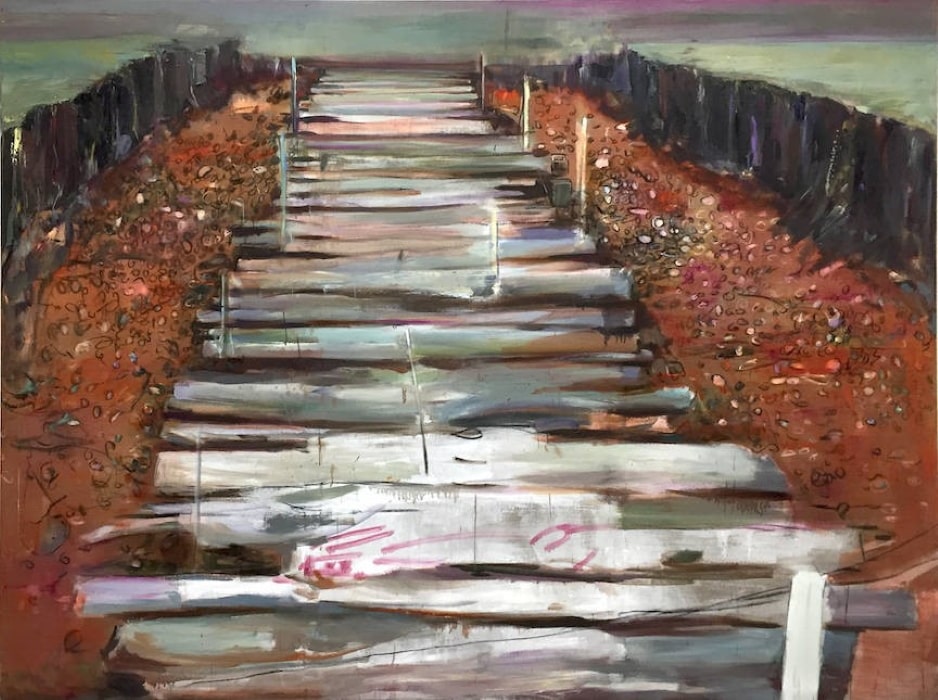 Die Untiefen der menschlichen Existenz sind auch Gegenstand des Bildes „Bastei“, eine freizügige malerische Komposition, die sich auf die Tatsache bezieht, dass genau dort (in der Sächsischen Schweiz) eine Gruppe von Kurden mit Bengalos einen Anti-Erdoğan-Auftritt inszenierten und im Oktober 2019 gegen den Einmarsch türkischer Truppen in Rojava (der Demokratischen Föderation Nord- und Ostsyrien) protestierten.