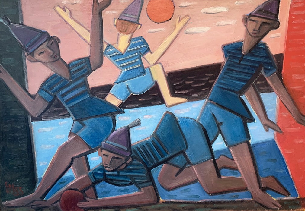 Bildunterschrift Titel: Emil Maetzel, Ballspieler, 1955, Öl auf Hartfaser, 71 x 100 cm