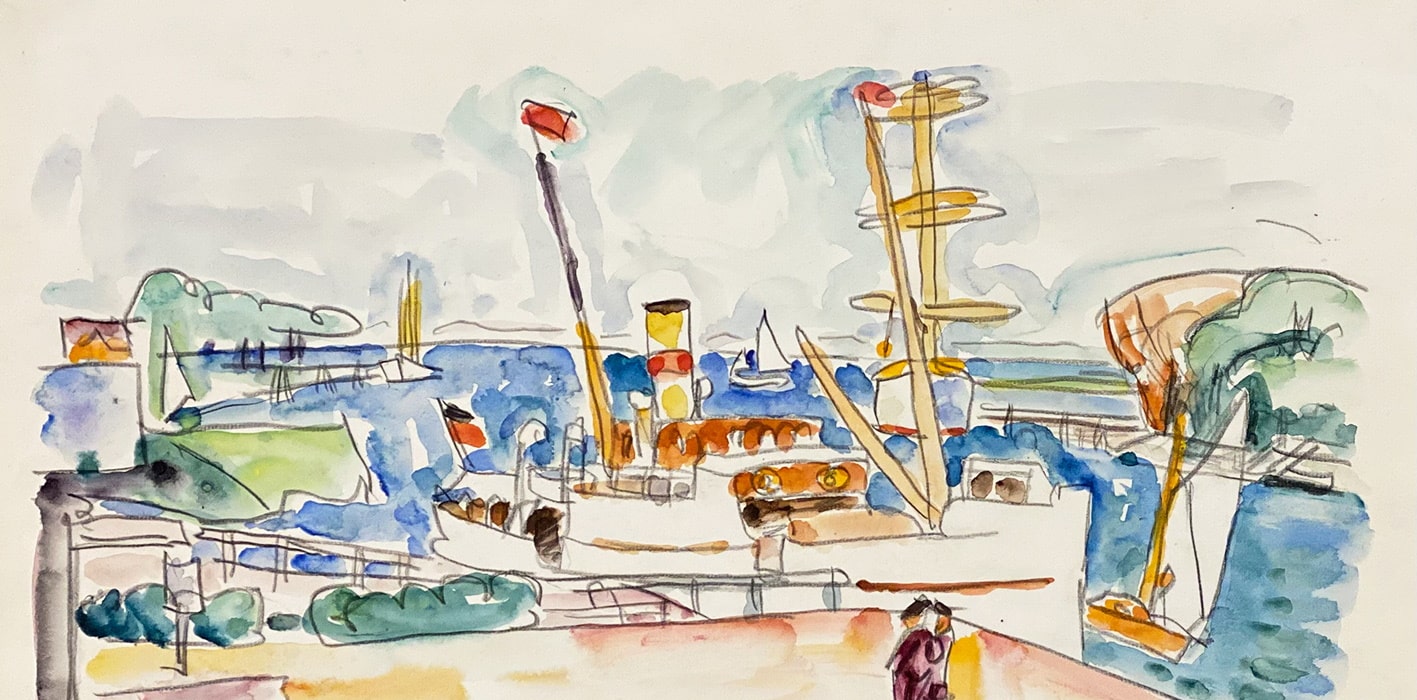 Ivo Hauptmann, o.T. (Am Pier), 1922, Aquarell, 33 x 51 cm