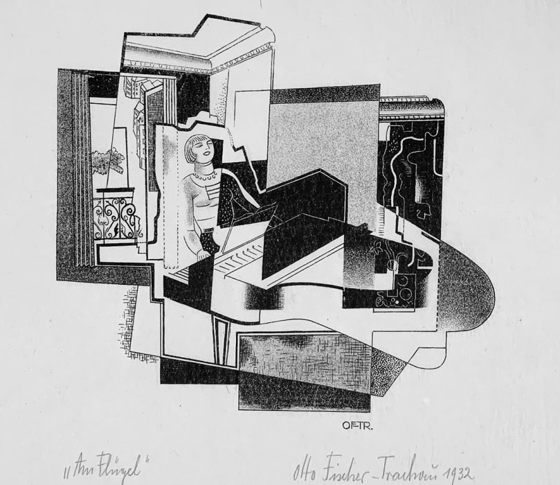 Otto Fischer-Trachau, Am Flügel, 1932, Linolschnitt, 43 x 54,5 cm