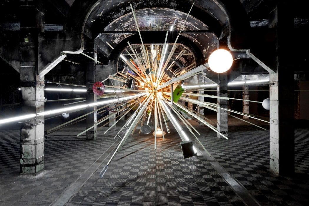 Bildunterschrift Titelbild: Björn Dahlem, Schwarzes Loch (Cygnus-X1), 2016, Holz, Neonlampe, diverse Objekte, 1500 x 1500 x 600 cm, Installationsansicht Matadero Art Center, Madrid, Courtesy der Künstler und Galerie Guido W. Baudach, Berlin, Heinrich Erhardt, Madrid, Sies + Höke, Düsseldorf, Foto: Björn Dahlem