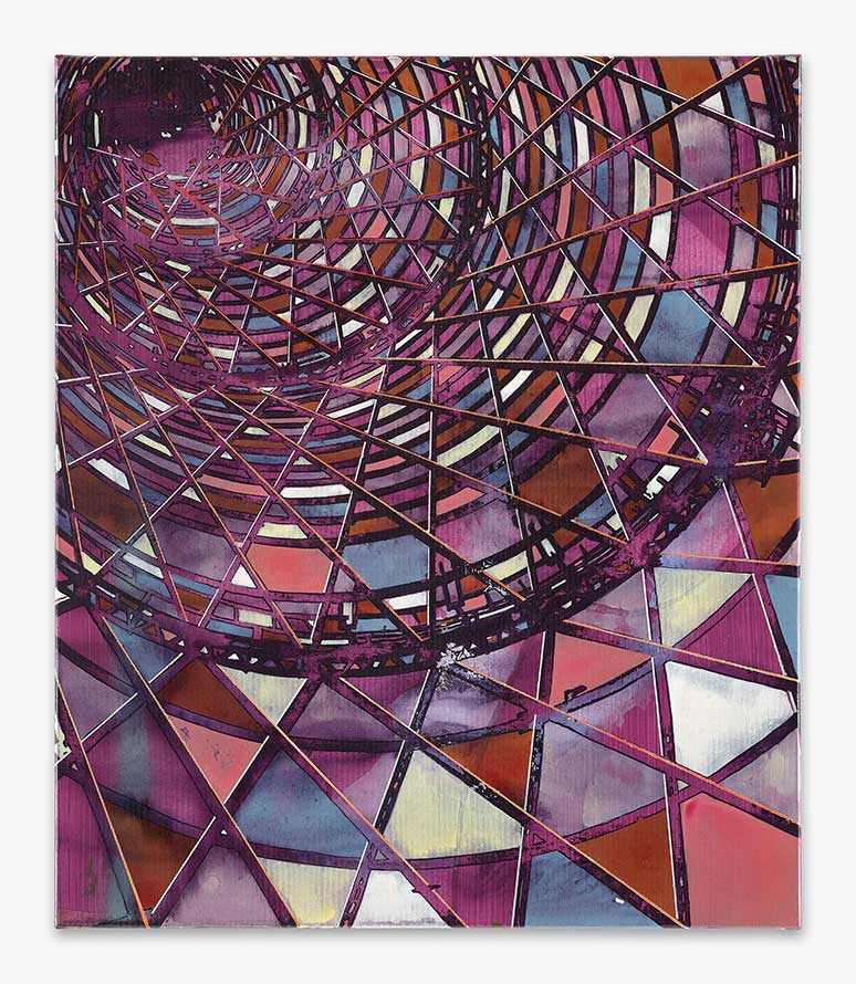 Jan Muche, o.T., 2019, Acryl, Tusche und Bootslack auf Leinwand, 70 x 60 cm