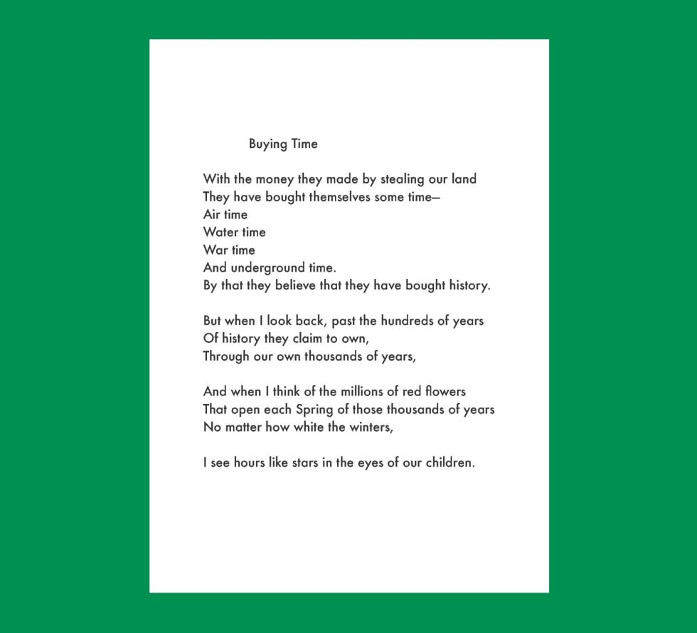 Jimmie Durham Buying Time, in Columbus Day, poems & drawings, Albuquerque 1983