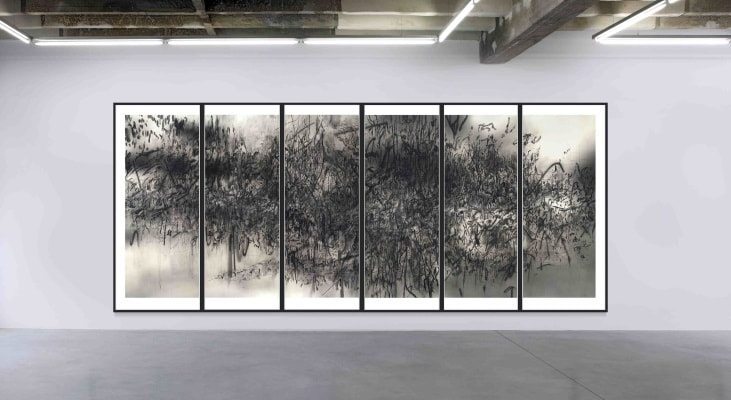 Bildunterschrift: Julie Mehretu, Epigraph, Damascus, 2016, photogravure, sugar lift aquatinta, spit bite aquatinta, open bite, 250 x 575 cm, framed, edition of 16, published by Niels Borch Jensen Editions, © Julie Mehretu, courtesy the artist and Niels Borch Jensen Gallery & Editions