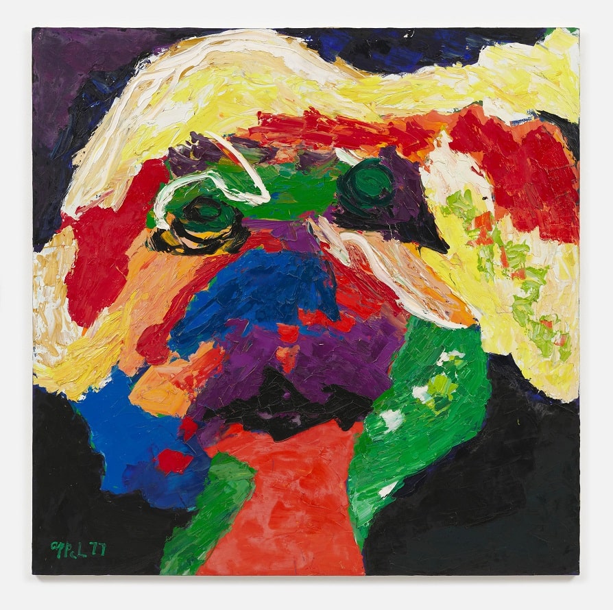 Wie der Titel schon sagt, scheinen sich die weitläufigen abstrakten Gesten von Encounter in Spring vor den Augen des Betrachters in einer Fülle von Formen zu entfalten, die in der Natur und in Landschaften gefunden wurden. Die Schwelle zwischen Eindruck und Ausdruck überschreitend, hat Appel die Erfahrung der realen Welt beständig mit dem verbunden, was auf der Leinwand zu sehen ist und was auf den ersten Blick abstrakt erscheinen mag. Diese liminale Qualität verbindet die Werke, aus denen sich diese Ausstellung zusammensetzt. In ihrer chronologischen Reihenfolge betrachtet, offenbaren sie den überragenden Einfluss, den Appels Entdeckung der amerikanischen Malerei bei seinem ersten Besuch auf dem Kontinent im Jahr 1957 und darüber hinaus hatte. Dieser Einfluss zeigt sich am deutlichsten in der reich strukturierten Oberfläche von Shattered World, 1960, mit ihrer dicken, pastosen Farbschicht, die direkt aus der Tube auf die linke Seite der Leinwand aufgetragen zu sein scheint, sowie in dem primitiv wirkenden Gesicht, das aus den groben Pinselstrichen und der vibrierenden Palette in Visage-Paysage No.4, 1977, hervorgeht.