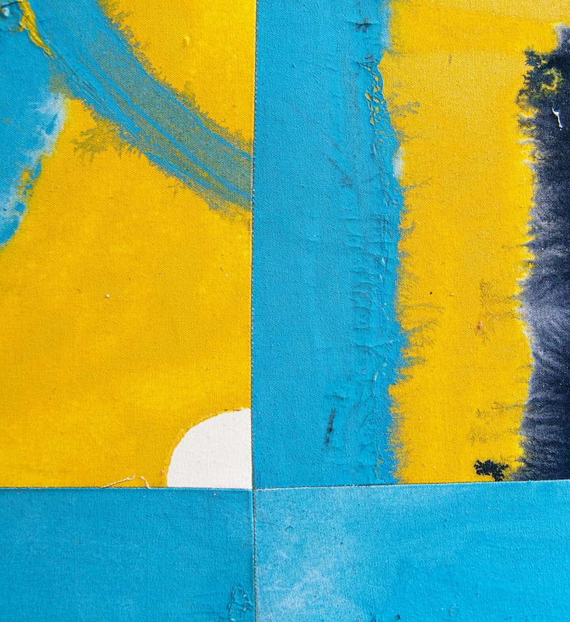 Nicht systematisch oder statisch, sondern bewusst und sichtbar manuell, intuitiv und individuell menschgemacht vermögen die farbintensiven Werke von Katharina Stadler, uns als Betrachtende zu berühren. Frei und ungezwungen geht die Künstlerin mit dem von ihr gewählten Medium wie auch mit dem Genre Malerei um. Wenn sie um die Farbflächen mit unbemalten Baumwollstücken einen Rahmen näht, scheint sie uns spielerisch, fast frech, unsere angeeigneten Sehgewohnheiten und antrainierten Bilderwartungen vor Augen zu führen. Sie schafft damit ein Bild um das eigentliche Bild herum. Hintergrund, Leerstelle und Rahmen zugleich, mögen uns diese “Randstücke” auch auf die Unverzichbarkeit des Bildträgers für die Malerei, auf die Materialhaftigkeit von Bildern im Allgemeinen und ihre Mehrdimensionalität hinweisen. Trotzdem die einzelnen Nähte immerhin souveräne und klar ordnende Binnengrenzen bilden, mag man angesichts der Fragmenthaftigkeit des Ganzen an dessen Grenzen zweifeln. Und doch geht es Katharina Stadler eben nicht um das Konzeptionelle. Vielmehr gelingt es ihr mit ihren leicht wirkenden, balancierenden Kompositionen auf raffinierte Weise, Bilder für unsere oft diffusen und manchmal chaotischen Innenwelten zu finden.