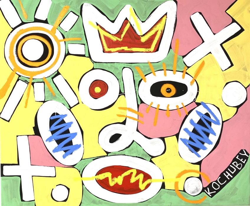 KOCHUBEY wurde 1986 geboren und zog 2011 nach Berlin. Es waren die 80er Jahre in New York und die Kunst von Warhol, Basquiat und Haring, die ihre eigene künstlerische Praxis inspirierten. Pop-Expressionismus, Kon-zeptkunst, Pop Art und Art Brut – KOCHUBEYs Arbeiten sind voll von autobiografischen, psychischen und quee-ren Inhalten.