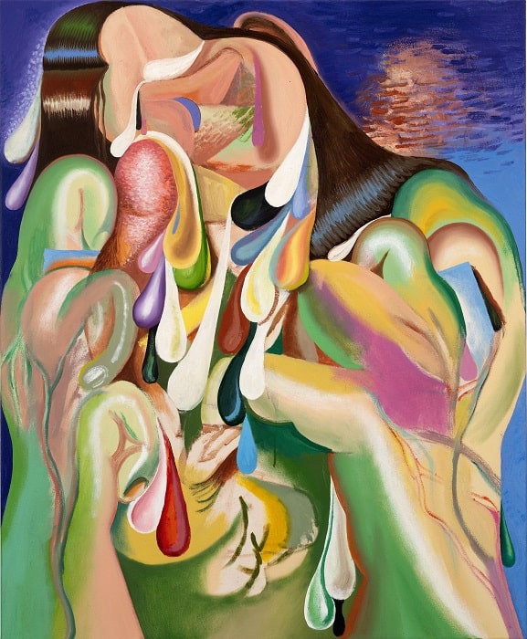 […]“ Die Bilder von Kristina Schuldt zeigen und sind eine Gemeinschaft, eine eloquente Truppe, sie sind ein inniger Austausch miteinander, zudem die Zeitgleichheit von Denken, Konsequenzen, Korrektur, Chaos, Weinen, Panik und Witz.