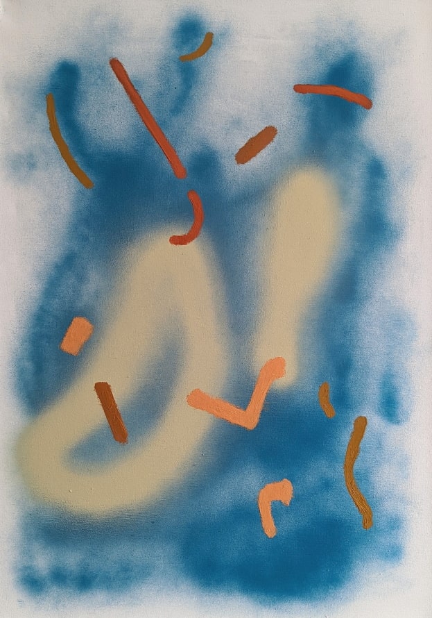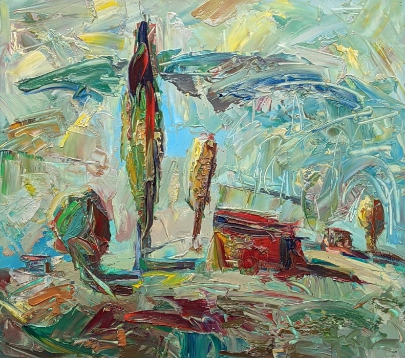 Der Künstler verwendet Farbe als Bildsprache und erzählt dem Betrachter die Geschichte seines Lebens durch scharfe, abstrakte Bilder. Seine Kunstwerke sind abstrakt und sehr ausdrucksstark. Wenn wir genau hinschauen, sehen wir, dass alle Formen auf der Leinwand so aussehen, als seien sie in Bewegung, als würden sie sich in einer Sekunde an einem anderen Ort, in einer anderen Welt befinden.
