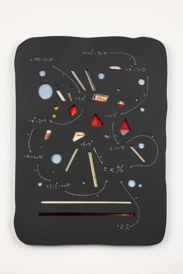 Inkjet print, wood, blackboard paint, pen, 110 x 81 cm, Foto: Thomas Bruns, Berlin