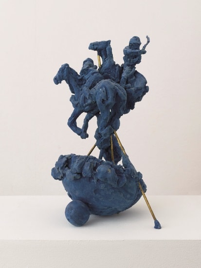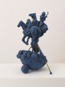 Bei Lucy Teasdale hängen Fotos aus Zeitungen und Handskizzen an der Atelierwand, eine Ideensammlung für eventuelle neue Skulpturen. An diversen kleinen Tonformen kann man den Fortgang ihrer Überlegungen verfolgen, Möglichkeiten einer skulpturalen Umsetzung werden getestet bevor die Arbeit am größeren Format beginnt. Skizzen und Vorformen dienen höchstens noch als Anhaltspunkt, die Skulptur wächst aus sich heraus. Man spürt die Begeisterung der Künstlerin für Energie und Bewegung von Körpern, die Überspannung dieser wird immer wieder in ihren Arbeiten getestet.