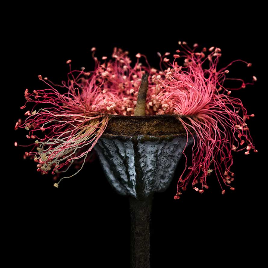 In der neuesten Reihe, wird das wässrige Element, das in FLORISZENZ eingeführt wurde und die Gruppierung, die die Arbeiten in TRIPTYCHON charakterisieren, zusammengeführt. Die lebendig erscheinenden, toten Blumen geben ihre Farbe ab an das Leben spendende Wasser und weihen sich so dem endgültigen, substanziellen Untergang. Oder ist es vielleicht eine Wiederbelebung? Diese Entscheidung muss der Betrachter treffen und darf sich schon jetzt überraschen lassen, wie die Reise der Pflanzen weitergeht.«