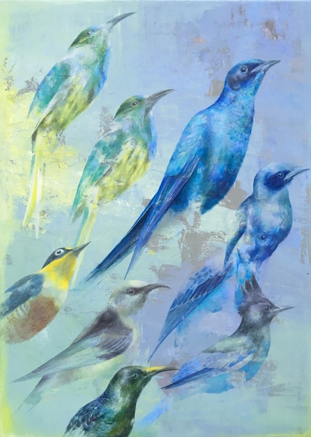 Bildunterschrift Titelbild: Isabelle Dutoit, Vögelparade, 2018, Öl auf Leinwand, 70 x 50 cm, gerahmt