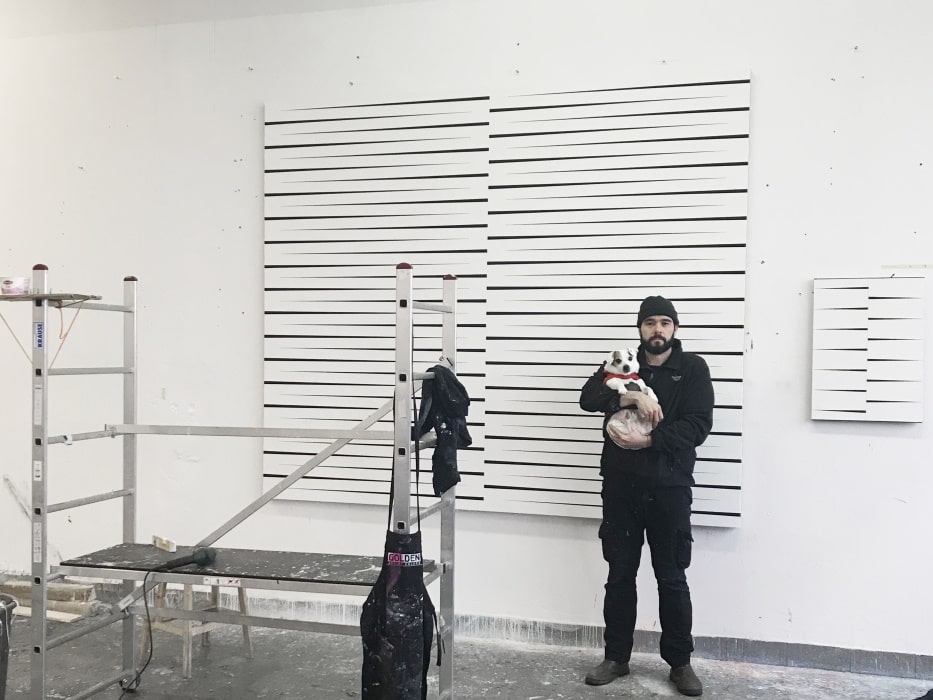 Eine seiner produktivsten und bekanntesten Werkserien „Color Magnetic Continuum“, an der Pablo in den letzten Jahren gearbeitet hat, begann unter dem Titel „Intervention“, wie der Titel dieser Ausstellung. Pablo Griss fischt in den fruchtbaren kunstgeschichtlichen Knotenpunkten des Minimalismus, der Kinetik, des Neo-Geo und der Geometrie und schafft seine eigene Bildsprache, die aus einer Reihe von „Interventionen“ resultiert, die er seinen Vorgängern geben wollte, um sich von den klassischen Formen und visuellen Tricks zu befreien, die für diese Bewegungen typisch sind.