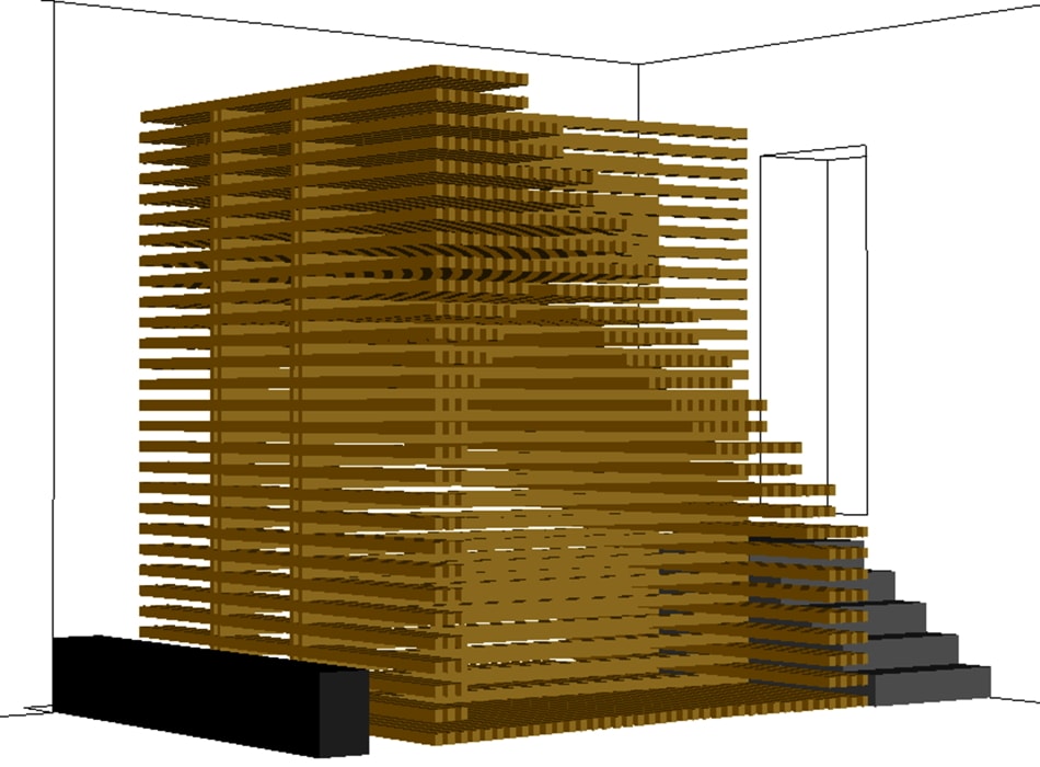 Nach seiner erfolgreichen Installation „Betreten auf eigene Gefahr“ im Jahr 2018 kehrt Pascal Brateau mit einem besonderen ortsspezifischen Konzept in die Galerie zurück. Die Installation des französischen Künstler-Architekten hat die Absicht eine gewisse „Raumwende“ zu schaffen, die auf dem urbanen Kontext und dem Volumen des Veranstaltungsortes basiert. Das Kunstwerk zwischen Skulptur und architektonischer Anordnung erkundet den Raum der Galerie – insbesondere die beiden bestehenden Ebenen und die kleine Treppe, die sie miteinander verbindet. Die neu geschaffene dritte Ebene bietet einen erhöhten Blick in alle Richtungen, insbesondere auf den hinteren Raum der Galerie und den Innenhof des Hauses. Dort findet der Besucher eine kleine Skulptur, die nach dem gleichen Konstruktionsprinzip wie die Installation im vorderen Raum gebaut ist und damit ihren eigenen Status in Frage stellt. Gewöhnlich auf die Straße ausgerichtet, verändert der Galerieraum seinen Fokus und bietet eine einzigartige Möglichkeit, die Umgebung aus einer anderen Höhe und aus einer anderen Perspektive zu erleben.