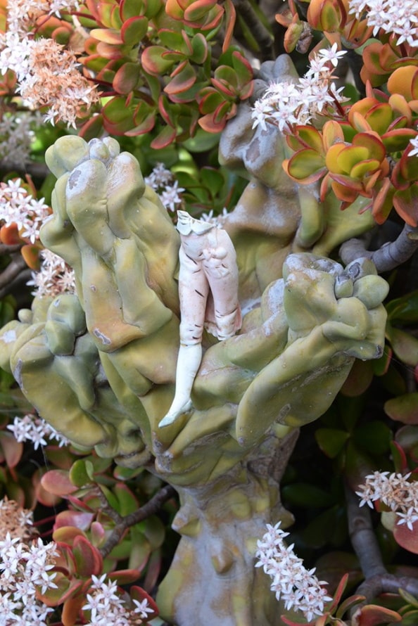 Bei Sebastian Kusenberg (1958, Hamburg, lebt und arbeitet in Berlin) sind die Scherben der Porzellanfiguren nicht so unschuldig, wie sie aussehen. Ursprünglich sollten diese zerbrechlichen Figuren ein Märchen oder eine Fabel illustrieren, doch nun vermittelt jedes Stück eine andere, vom Künstler erfundene Geschichte. Die Neuerfindung dieser Little People, wie Kusenberg sie nennt, erweckt sie wieder zum Leben und macht sie zu Zeitzeugen, die mit der Natur verflochten sind. Die Absurdität der Schauplätze verleiht auch den Porzellanfiguren eine leichtere Erzählung, die neue künstlerische Perspektiven eröffnet. Bäume sind ein Ort des Lebens und des Todes, ein Raum der Erinnerung, in dem diese zerbrochenen und unvollständigen Artefakte vergangener Leben ihr volles Erinnerungspotenzial entfalten können.