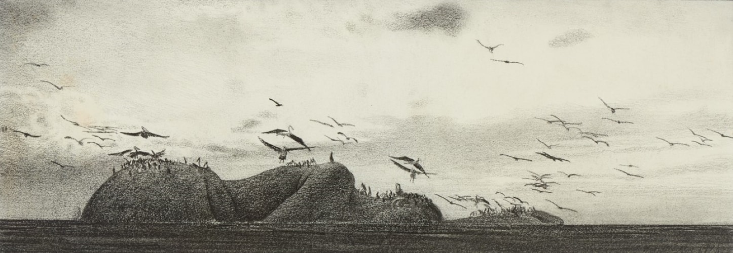 Richard Müller, Vogelinsel, 1915, 17 x 49,5 cm, Kohle auf Papier