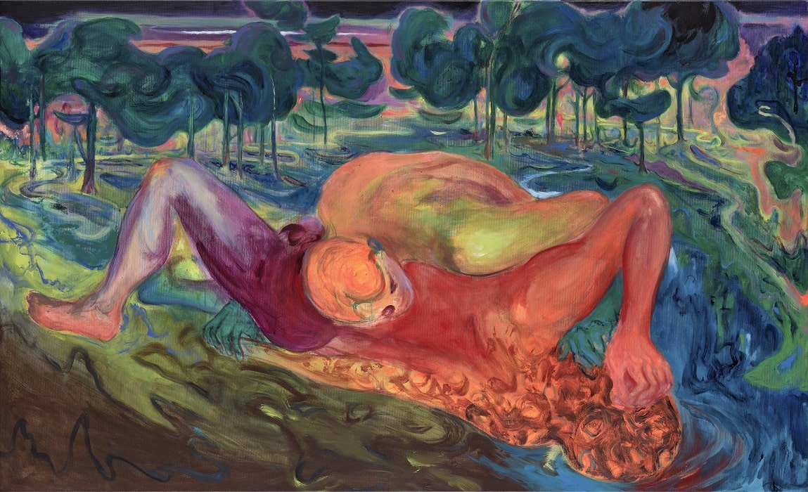 Bildunterschrift: Rao Fu, Summer night, 2024, Öl auf Leinwand, 113 x 185 cm