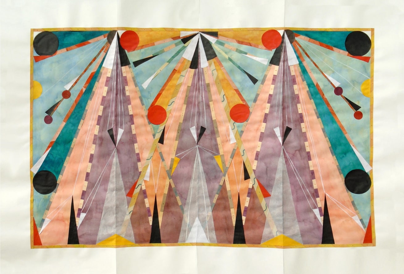 Rithika Merchant, Panorama I (Terrain), 2021, Mischtechnik-Collage mit Gouache, Aquarell, Link und Marker auf Papier, 70x100cm, 27 1/2 x 39 3/8 in.