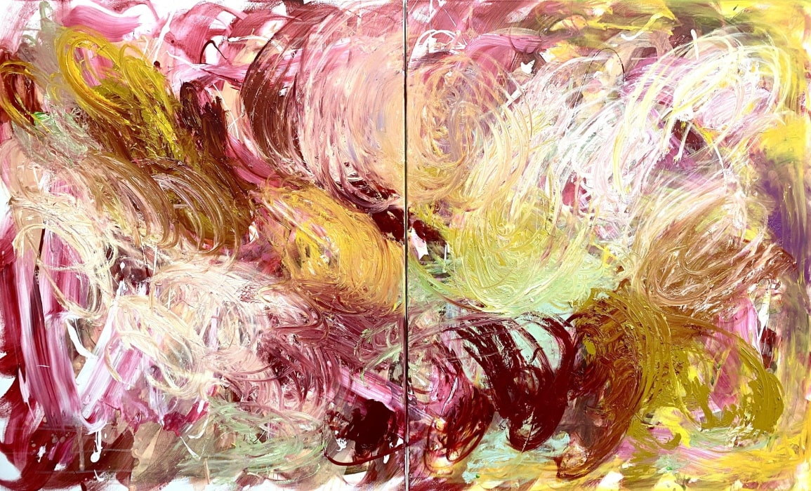 Simone Kornfeld, Moon Waves, 2020-2022, 200 x 300 cm (Diptychon), Öl / Leinwand