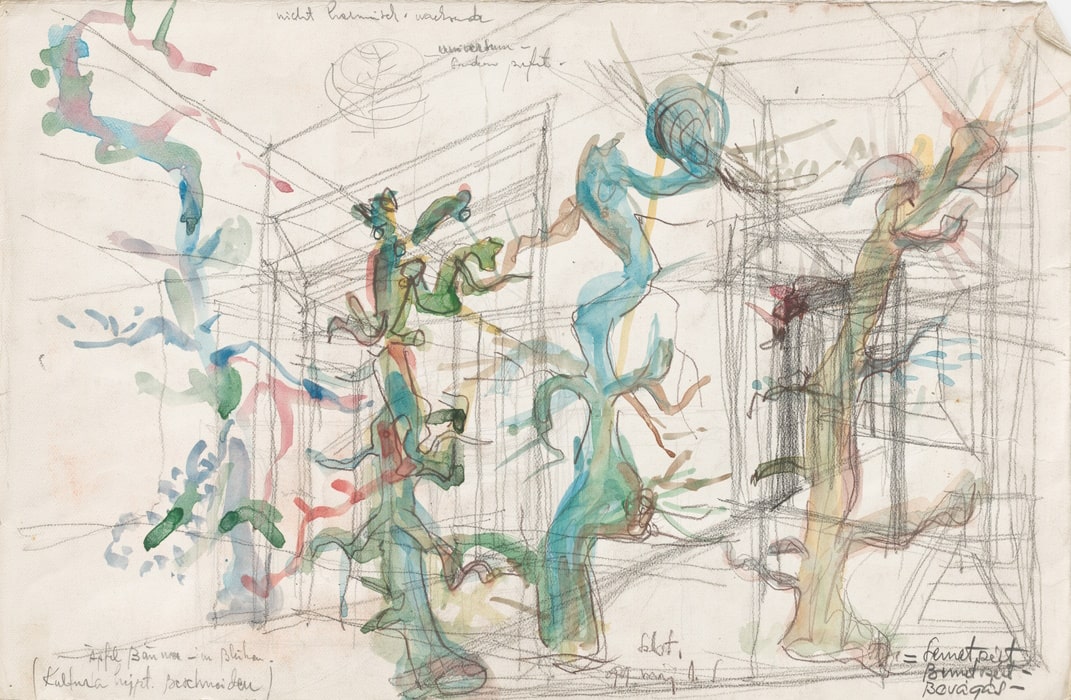 Stefan Bertalan, Apfel Bäume, 1999, Gouache, Bleistift und Holzkohle auf Papier