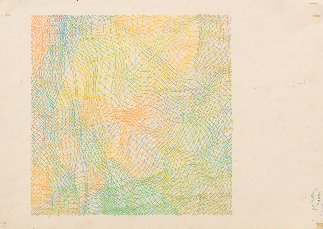 Bildunterschrift Titel: Stefan Bertalan, Network, 1973-1974, Buntstift auf Papier, 35 x 50 cm, Foto: Jörg von Bruchhausen