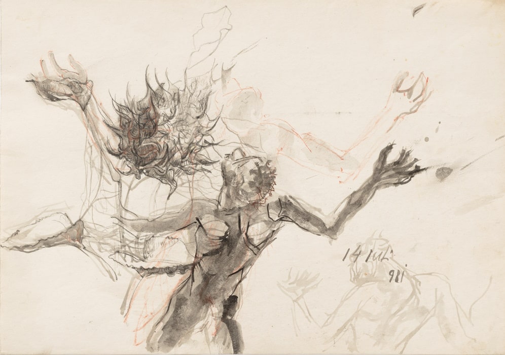 Stefan Bertalan, Untitled, 1984, Rötel, Tusche, Holzkohle und Kugelschreiber auf Papier
