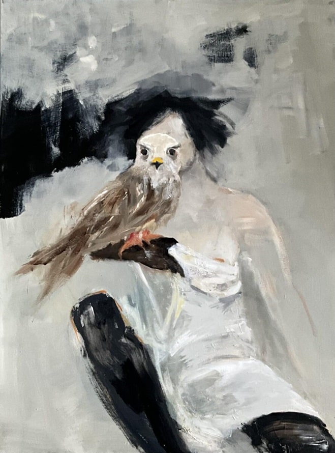Bildunterschrift Titelbild: Tina Engel, Fabel – Haft, 2024, Öl auf Leinwand, 80 x 60 cm