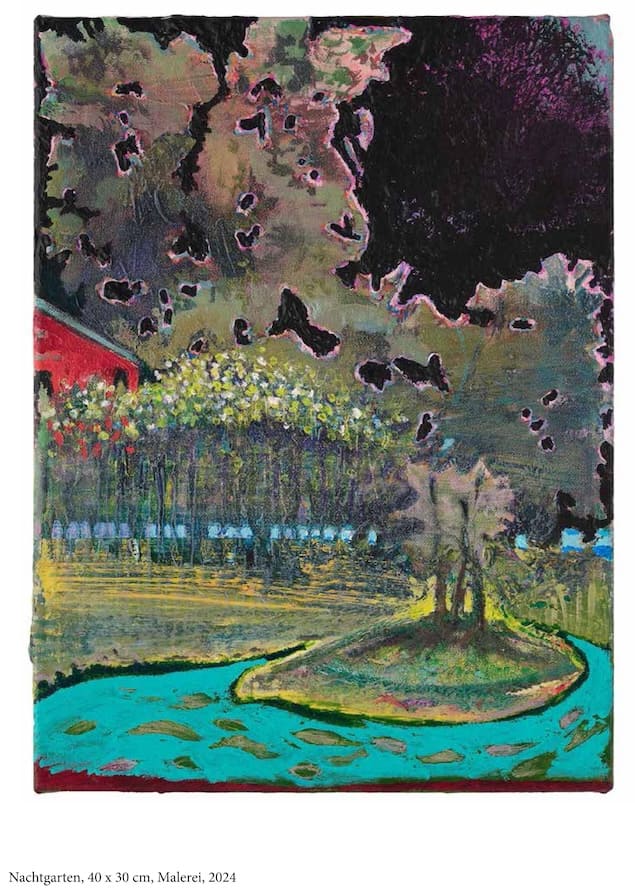 Bildunterschrift Titelbild: Tino Geiss, Nachtgarten, 2024, 40 x 30 cm, Acryl auf Leinwand.