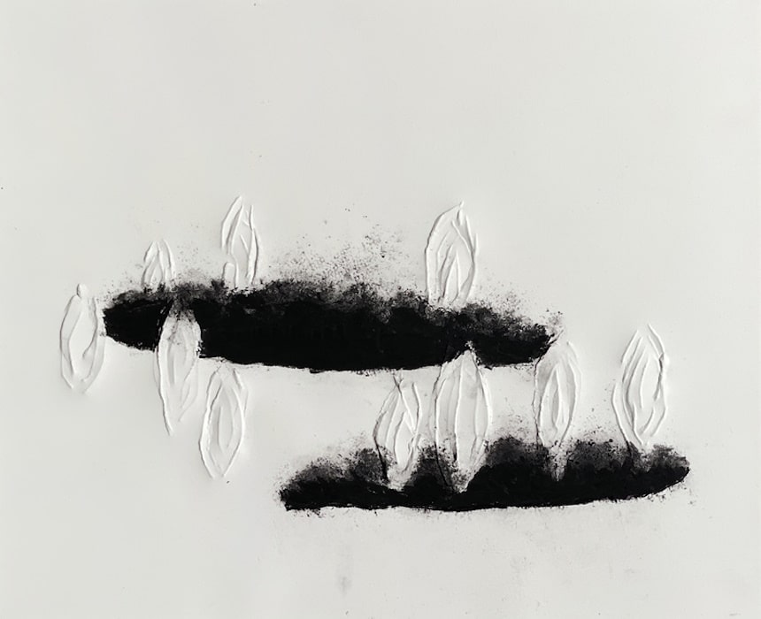 Nögers aktuelle Papierwerke, die im Winter 2022-23 in Florida entstanden, bearbeitete er mit Kohle, die, durch ihre Eigenschaft, seine direkte Ausdrucksweise unterstreicht. Kohle auf Papier spiegelt Udo Nögers Drang wieder, spontan und ehrlich zu sein.