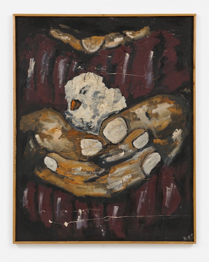 Werner Büttner, Selbst mit Vögelchen, 1986, oil on canvas, in artist’s frame, 244.5 x 194 x 4.7 cm.; 96 1/4 x 76 3/8 x 1 7/8 in.