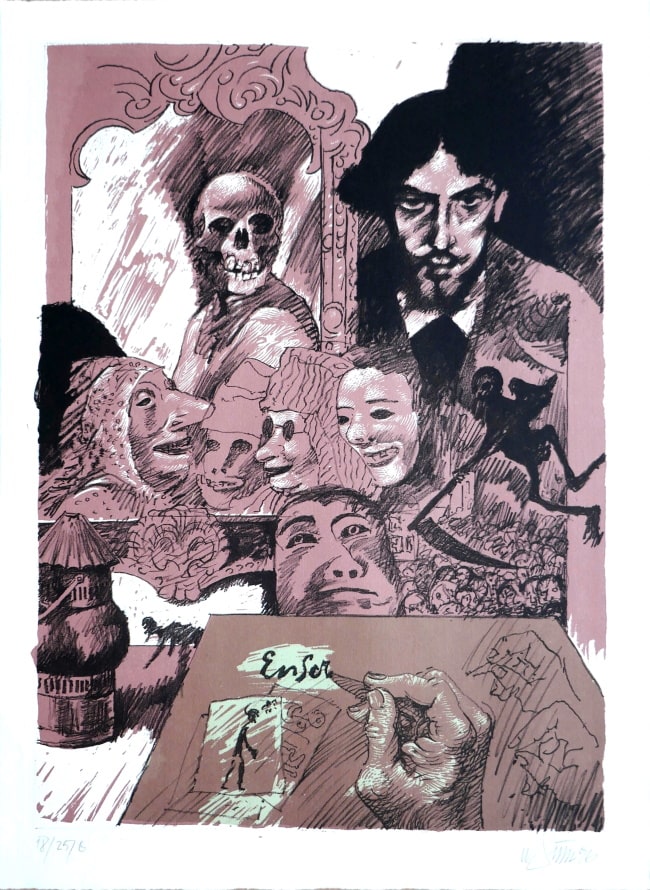 Willi Sitte, Für James Ensor, Farbzinkographie, 1996 © feinartberlin