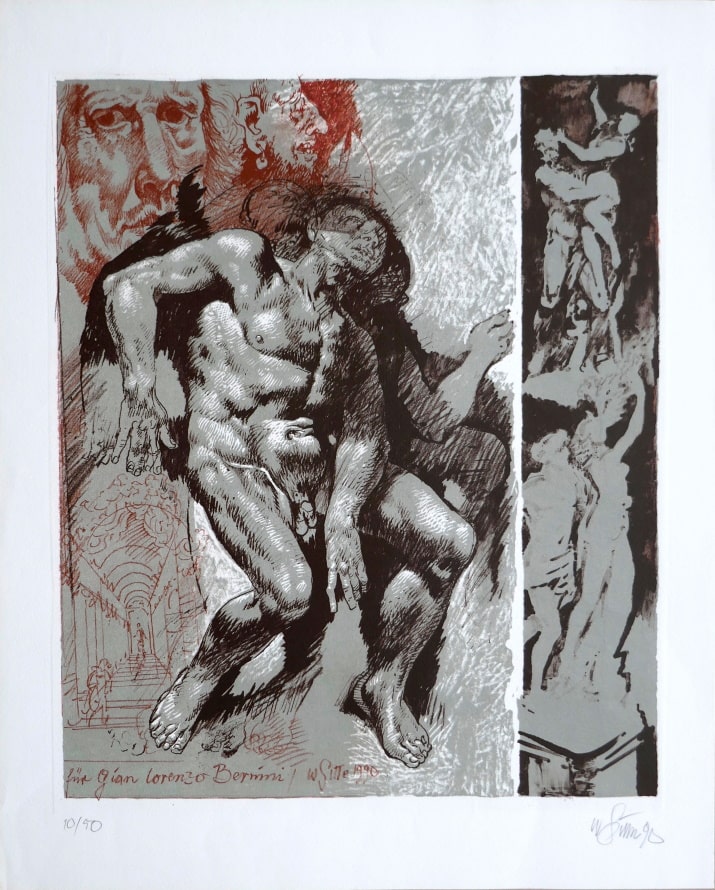 Willi Sitte, Für Gian Lorenzo Bernini, Farbzinkographie, 1990 © feinartberlin