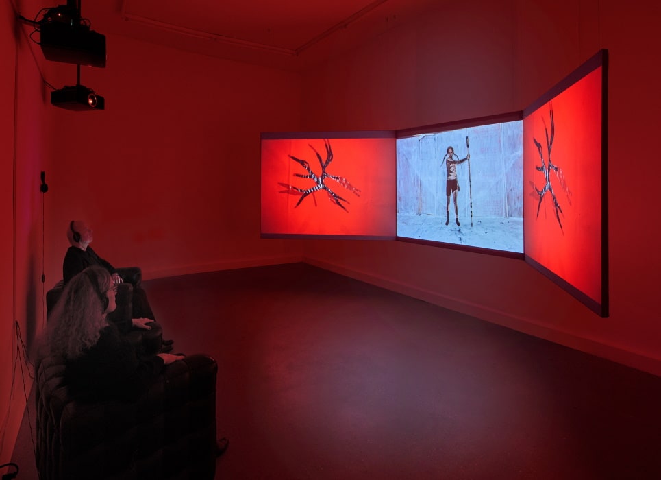 In der Galerie wird in einer aufwendigen Dreikanal-Videoprojektion der Film „Throw Your Shadows“ gezeigt, für den der Künstler 2019 den Swiss Art Award erhielt. Es ist ein immersives Experiment, für das Rebetez aus Traumbildern, Urreligionen und einer Esoterik schöpft, die sowohl aus dem Jura als auch aus Afrika oder Ozeanien stammen könnten. Die Einzelbilder des Films basieren auf Malerei, Plastik, Beleuchtung und Fotografie, während der ruckelige Bildrhythmus und die Tonspur aus bruitistischer Musik und konkreten Klängen seinen Betrachter nach und nach in den Bann ziehen.