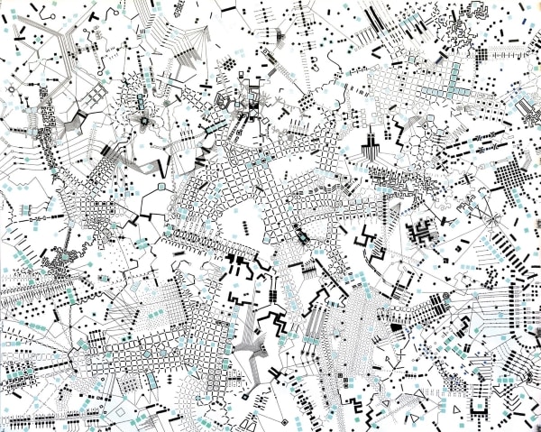 Bildunterschrift: Jürgen Kellig Zivilisation # 180 – 052 2017 Tusche auf Papier 150 x 180 cm