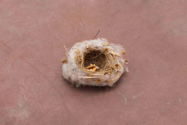 Bildunterschrift (großes Anzeigebild): Ariel Schlesinger, Untitled (nest), Bulbul nest, cigarette buds, variable dimensions, 2016. Photo: Elad Sarig