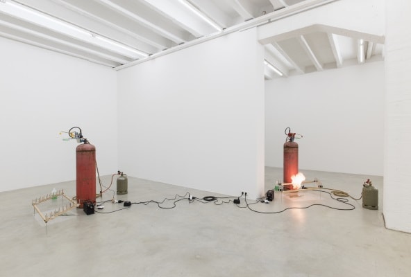 Bildunterschrift 3 (Feuerlöscher): Ariel Schlesinger, Elvira, exhibition view, Galerija Gregor Podnar, Berlin 2017. Photo by Marcus Schneider