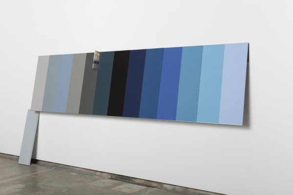 Bildunterschrift: Fernanda Fragateiro, images are acts, 2017, Stainless steel supports, handmade notebooks with fabric covers, pigmented concrete piece and cut book: Demo, Eine Bildgeschichte des Protests in der Bundesrepublik, Nikolaus Jungwirth. Beltz Verlag, Weinheim und Basel 1986, 98 x 435 x 24 cm, Courtesy of the artist and Arratia Beer, Photograph credit: António Jorge Silva