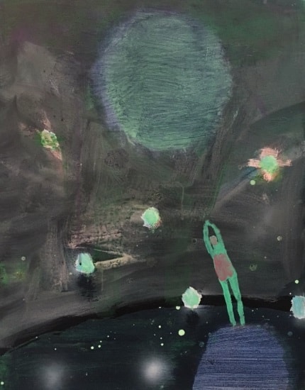 In der Ausstellung spielen Weltraum- und Nachtreferenzen eine Rolle, entlang einer farbenfreudigen und jenseitigen Abstraktion. Es werden Bezüge zu Tieren, Natur und Spiritualität zu sehen sein.“