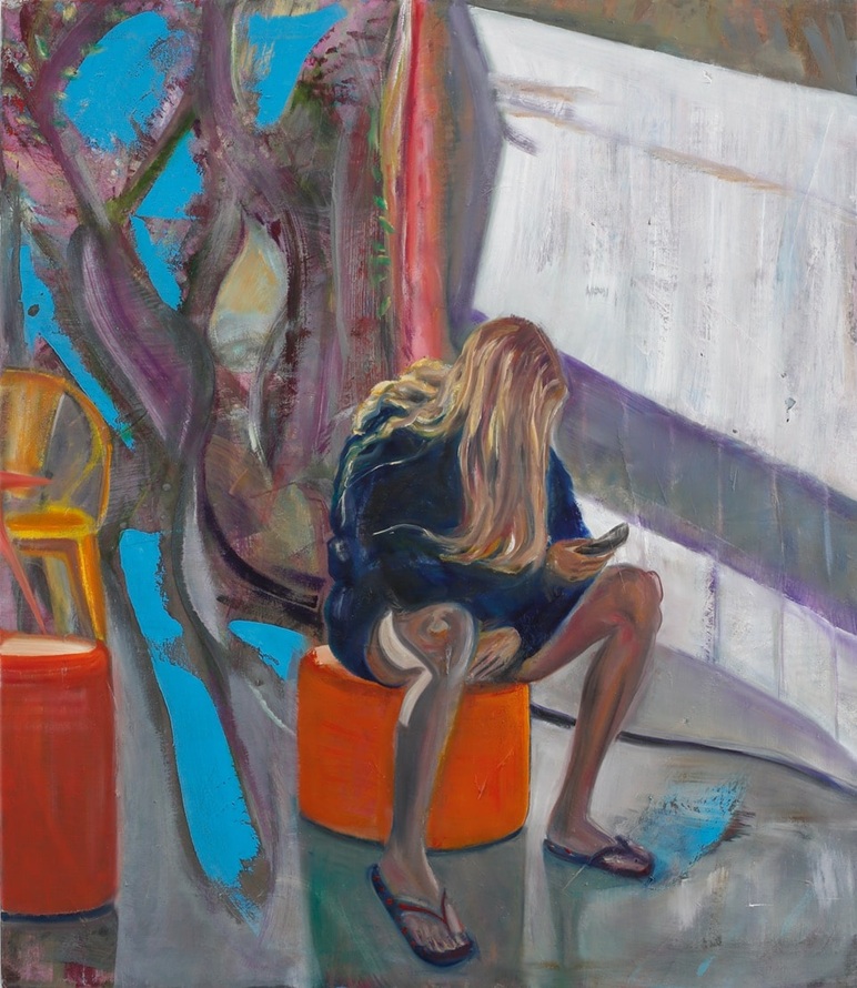 Berit Mücke, BASEN, 70 50 cm, Tempera und Öl auf Leinwand, 2025